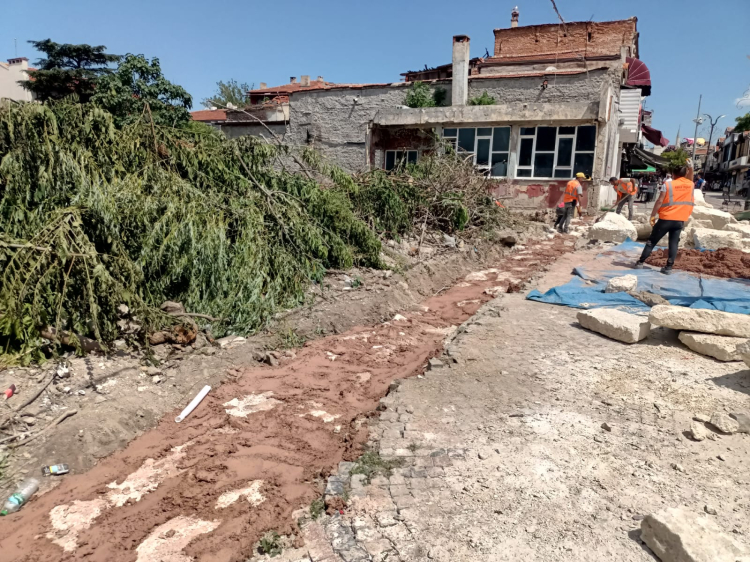 Edirne'nin Saraçlar Caddesi’ndeki eski Ticaret Borsası binası ve Roma dönemine ait tarihi surların bulunduğu alanda çalışma başladı.