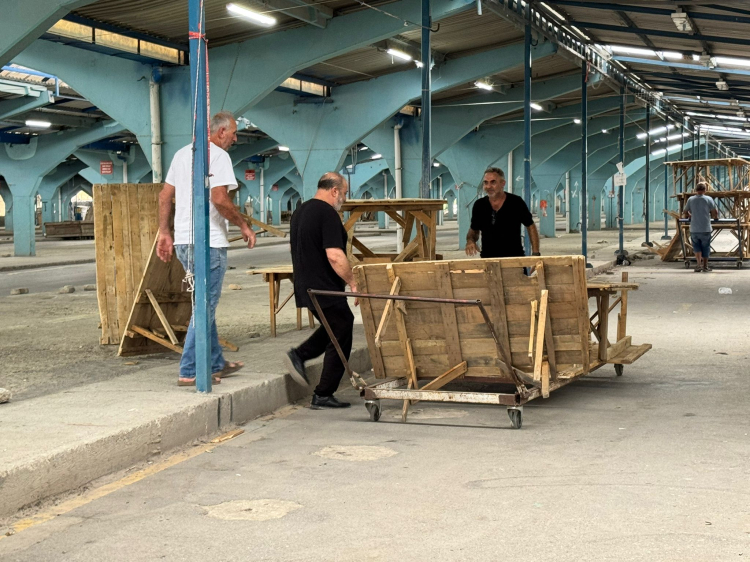 Edirne Belediyesi Zabıta Müdürlüğü ekipleri tarafından pazarın kilidinin açılmasıyla birlikte esnaf yarın için tezgahlarını hazırlamaya başladı.