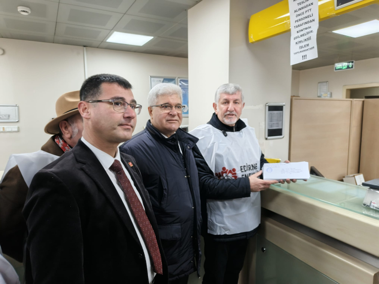 DİSK Trakya İl Temsilciliği Salonu’nda düzenlenen basın açıklamasının ardından katılımcılar PTT Edirne Başmüdürlüğü’ne giderek mektuplarını siyasi partilerin genel başkanlarına gönderdiler. Etkinliğe CHP Edirne İl Başkanı Yücel Balkanlı, CHP Edirne Merkez İlçe Başkanı Volkan Akgüngör, Anahtar Parti Edirne İl Başkanı Erdinç Balıkçı da katıldı.
