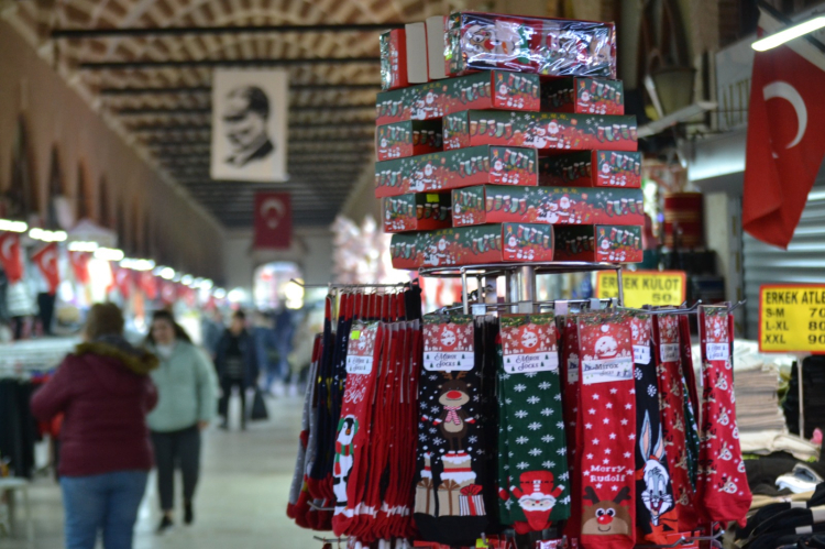 Edirne’nin tarihi Alipaşa Çarşısı’ndaki giyim esnafı, yılbaşı gecelerinde en çok tercih edilen Noel Baba figürlü kırmızı çorapları satışa çıkarırken; çeşitli renklerde yılbaşı temalı giyim eşyaları da dikkat çekti. Yılbaşı temalı giyim ürünlerinin başta yabancı turistler olmak üzere vatandaşlardan da ilgi görmesi bekleniyor.