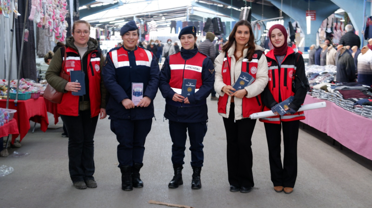 Edirne İl Jandarma Komutanlığı Aile İçi Şiddetle Mücadele ve Çocuk Kısım Amirliği ve Edirne Aile ve Sosyal Hizmetler İl Müdürlüğü ile Şiddet Önleme ve İzleme Merkezi Müdürlüğü personeli tarafından, 8 Mart Dünya Kadınlar Günü çerçevesinde bir dizi etkinlikler gerçekleştirmeye devam ediyor.