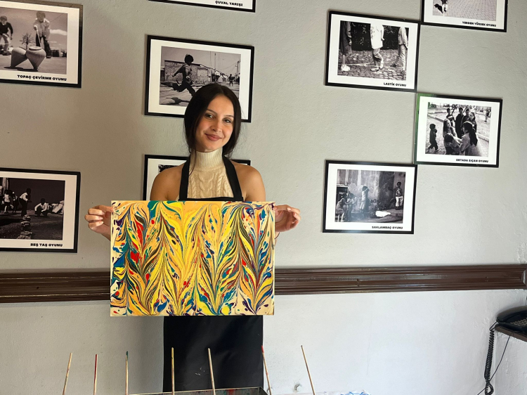 Atölyede, deneyimli ebru sanatçıları tarafından katılımcılara ebru sanatının tarihsel kökeni, teknikleri ve incelikleri anlatıldı. Su yüzeyine renklerin bırakılması ve desenlerin oluşturulması ile devam eden süreçte, katılımcılar kendi özgün eserlerini oluşturma imkânı buldu. Renklerin su üzerinde dans ettiği bu kadim sanatı uygularken, katılımcılar yaratıcılıklarını ortaya koyarak geleneksel ebru sanatına modern dokunuşlar eklediler.