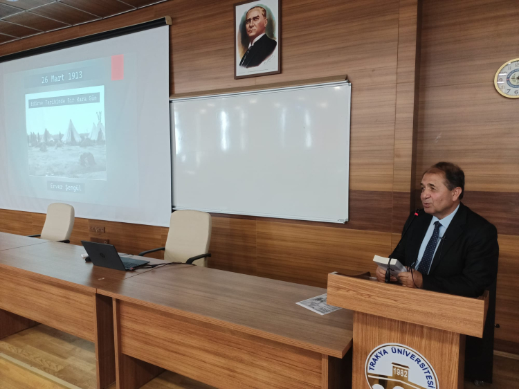Edirne’de, Trakya Üniversitesi Edebiyat Fakültesi Tarih Bölümü tarafından “26 Mart 1913 Edirne’nin Kara Günü” söyleşisi gerçekleştirildi.