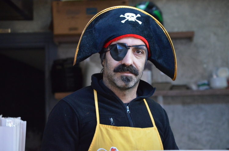 Edirne’nin en işlek noktalarından Saraçlar Caddesi’nde dönercilik yapan 35 yaşındaki Mahir Korkmaz, korsan kıyafeti ve enerjik tavırlarıyla dikkat çekiyor. İstanbul’da büyük restoranlarda edindiği deneyimin ardından Edirne’ye gelen Korkmaz, sinema filminden ilham alan konseptiyle kısa sürede ilgi odağı oldu.