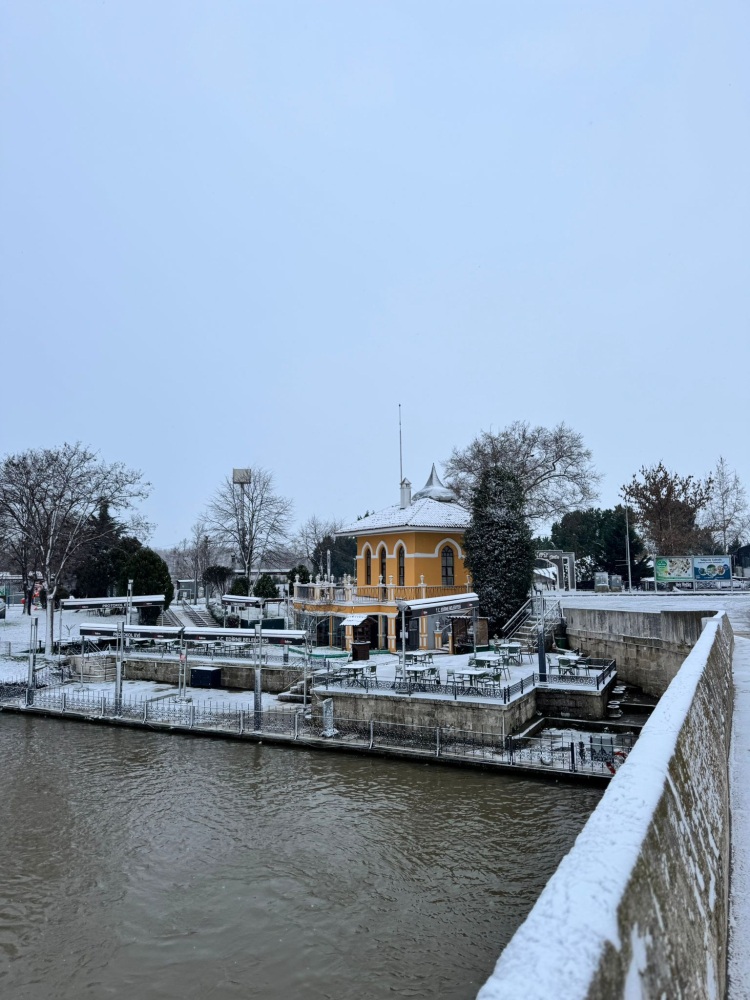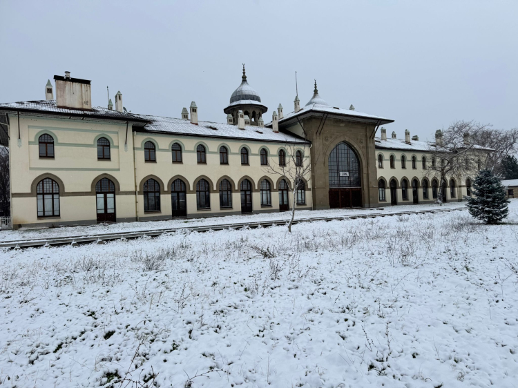 Trakya Üniversitesi Güzel Sanatlar Fakültesi’nde bulunan tarihi tren garı çevresinde oluşan beyaz örtü adeta kartpostallık görüntülere ev sahipliği yaptı.
