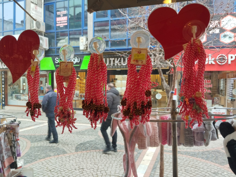 Baharın gelişini müjdeleyen marteniçkalar, Edirne’de hediyelik eşya ve takı satıcılarının dükkanlarında yer almaya başladı. Bir Balkan geleneği olan marteniçkaları, satıcıların birçoğu geleneğin çıkış yeri olan Bulgaristan’dan alıyor.