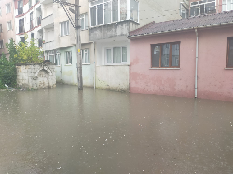 Edirne'nin Abdurrahman Mahallesi'nde su giderinin tıkalı olduğu sokak tamamen sulara teslim oldu. Suyun her saniye daha da derinleştiği sokakta, bazı evler su baskınıyla karşı karşıya kalma tehlikesi yaşıyor.