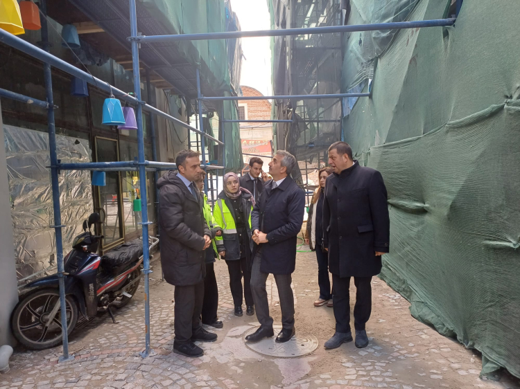 Edirne Valisi Yunus Sezer, Saraçlar Caddesi'nde devam eden sokak sağlıklaştırma çalışmalarını yerinde inceledi.