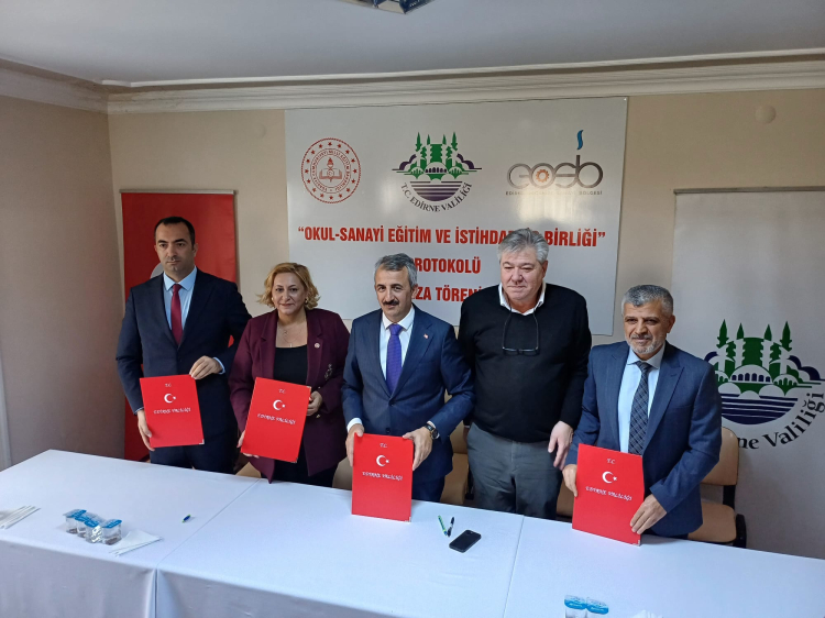 Edirne İl Milli Eğitim Müdürlüğü ile Edirne Organize Sanayi Bölgesi (OSB) arasında, meslek liselerinde okuyan öğrencilerin eğitim, staj ve istihdam süreçlerini kapsayan Okul–Sanayi Eğitim ve İstihdam Birliği Protokolü imzalandı. İlk etapta 30 öğrenci burs alacak ve fabrikalarda istihdam edilecek.
