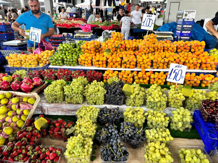 Edirne’de her hafta çarşamba ve cumartesi günleri kurulan 1. Murat Semt Pazarı’nda meyve fiyatları dikkat çekiyor. Pazarda neredeyse hiçbir meyvenin kilosu 100 TL’nin altında satılmıyor.
