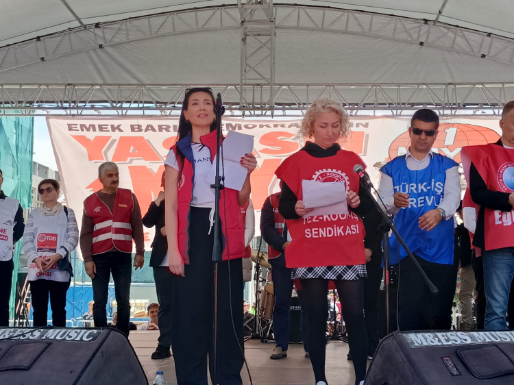 Programda 1 Mayıs Emek ve Dayanışma Günü konuşmasını DİSK adına Çisem Aksoy ve TÜRK-İŞ adına İlknur Ergüder okurken; hem 1 Mayıs Emek ve Dayanışma Günü'nü kutladılar, hem de işçilerin taleplerine dikkat çektiler.