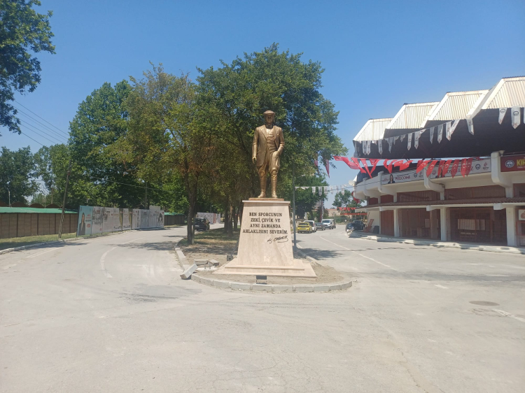 Edirne’de, tarihi Kırkpınar Yağlı Güreşleri’nin kalbi olan Sarayiçi'nde yeni bir simge daha yükseldi. Başpehlivanların heykellerinin bulunduğu alana, Ulu Önder Mustafa Kemal Atatürk'ün heykeli dikildi. Heykelin kaidesinde Atatürk’ün spora ve sporcuya bakışını özetleyen “Ben sporcunun zeki, çevik ve aynı zamanda ahlaklısını severim” sözü yer aldı.