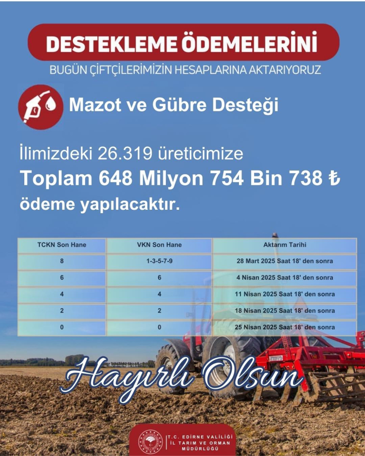 Edirne Ziraat Odasını, üreticilere ödenen desteklemeler konusunda yanıltıcı bilgi vermek ve algı operasyonu yapmakla suçladı.