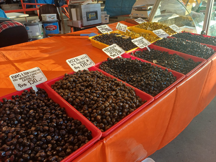 Edirne'de her Çarşamba günü kurulan Semt Pazarı, sakin bir gün geçiriyor. Peynir ile birlikte sofraların vazgeçilmezi zeytin, vatandaşın her zaman talep ettiği ürünlerden biri oluyor.