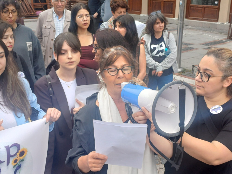 Edirne Saraçlar Caddesi'nde bugün, Edirne Kadın Platformu kadına yönelik şiddet hakkında basın açıklaması gerçekleştirdi. Geçtiğimiz günlerde katledilen Bahar Aksu'nun ne ilk ne de son kadın cinayeti olduğuna dikkat çekilen açıklamayı platform adına Şahide Ağaoğlu yaptı. "Herkes duysun bu ülkede kadın kırımı var" diyen Ağaoğlu, "Bugün Edirneli Bahar Aksu'nun cenazesindeydik. Bahar'ın kendini tüm koruma çabasına rağmen Şişli'de herkesin gözü önünde, güpegündüz, sokak ortasında boşandığı erkek tarafından tasarlanarak katledilmesine, basından tüm ülke şahit oldu" şeklinde konuştu.