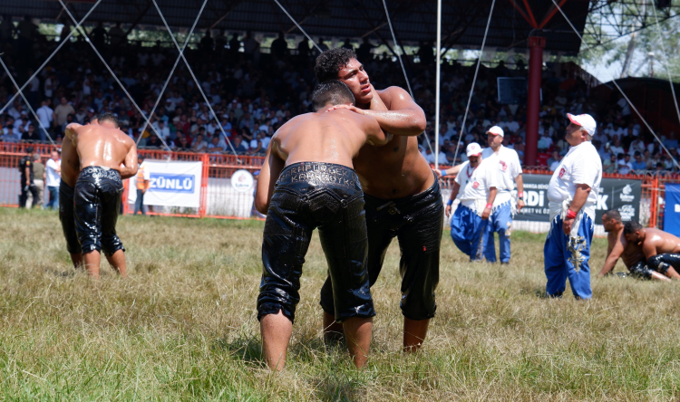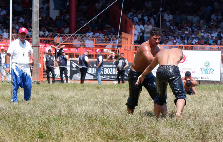 Deste Küçük boyunda güreşen Edirneli pehlivan Teyfik Gülter, yarı final müsabakasında Sakaryalı pehlivan Ferhat Duman ile karşılaştı.