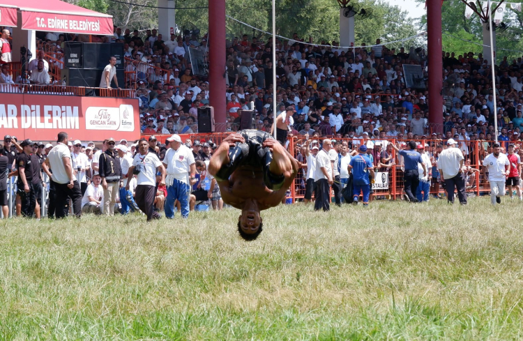 Edirne’de bu yıl 664’üncüsü düzenlenen Kırkpınar Yağlı Güreşleri’nde Edirneli pehlivanlar Er Meydanı’na çıkmaya devam ediyor.