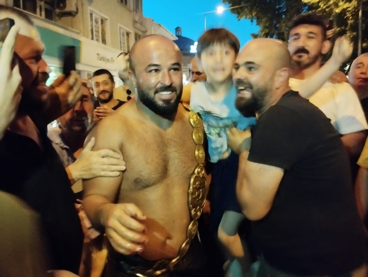 Edirne’de Kırkpınar bittiğinde ve başpehlivan belli olduğunda vatandaşlar Saraçlar Caddesi girişindeki kavşakta pehlivanı beklemeye başlıyorlar.