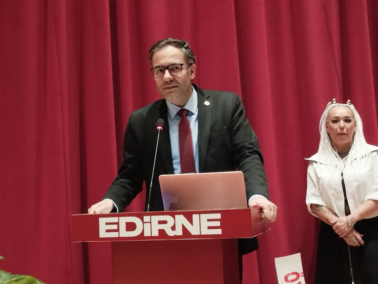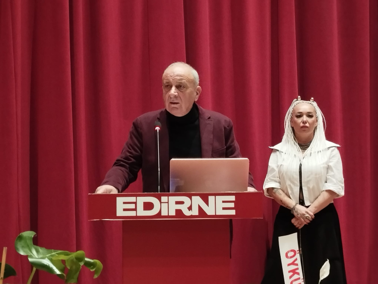 Sergi açılışında konuşan Edirne Belediye Başkan Yardımcısı Cenk Ergüden ise her fotoğrafın belge niteliği taşıdığına değinerek, “Ben mesleğim sebebiyle mimari fotoğraf ve sanatsal fotoğraf üzerine biraz çalışmalarda bulunmuştum bir insanım. Fotoğrafın özellikle belge niteliğinin altını çizmekte fayda olduğunu düşünüyorum. Neticede bir fotoğraf çekildiği anda belge haline geliyor. Bugün baktığımız zaman çok eski Yeşilçam filmlerindeki sinema kareleri bir restorasyon için kullanılabilir belge niteliği taşıyor. Bunların örnekleri yaşandı. Herhangi bir hatıra fotoğrafında bir binaya dair ya da bir çevreye dair bir kayıt varsa bu kayıt yine bahsettiğimiz usulde birtakım konularda belge niteliği olarak resmi işlemlere de tabii tutulabiliyor” dedi.