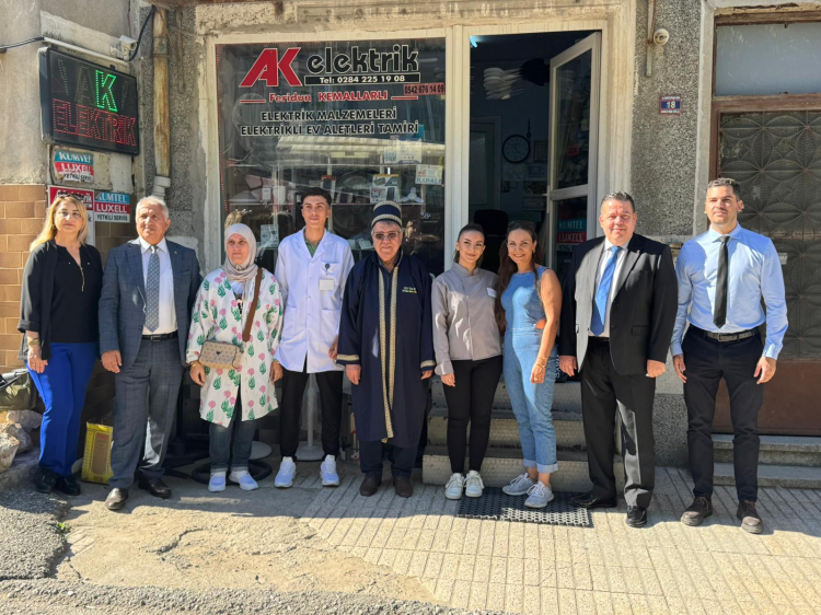 Yılın kalfası Duha Akan, yılın çırağı Hüseyin Can Esen ile birlikte Edirne Ticaret İl Müdürü Mustafa Kurt, Edirne Esnaf ve Sanatkârlar Odası Birliği (EDESOB) Başkan Vekili Selçuk Gül, yılın ahisini iş yerinde ziyaret etti.