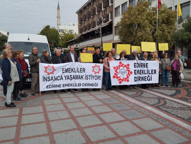 Edirne Emekliler Derneği, sendika hakkı verilmesi ve emeklilerin yaşadıkları maddi zorluklar hakkında basın açıklaması düzenlediler.