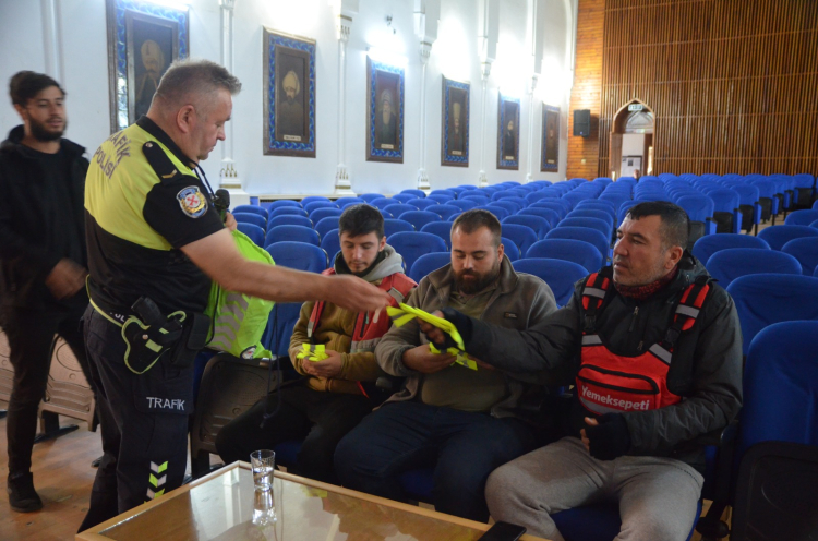 Eğitim programı sonunda, motosiklet sürücülerinin ve kuryelerin gece sürüşlerinde daha görünür olmalarını sağlamak amacıyla reflektörlü kolluk hediye edildi. Emniyet yetkilileri, yeleklerin kullanımıyla gece trafik kazalarının azalacağına dikkat çekti.