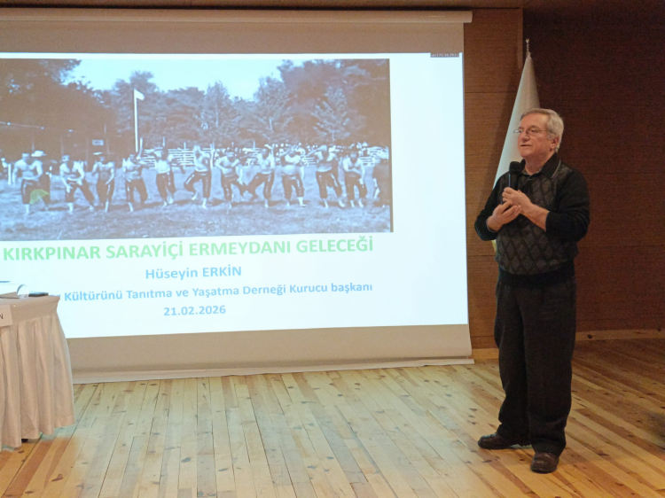 Edirne’de “Kırkpınar Yerleşim Alanı Forumu: Er Meydanı'nın Geleceği” konusuyla düzenlenen Edirne Kent Konseyi (EKK) 37’nci genel kurulunda üçüncü sunumu Kırkpınar Kültürünü Tanıtma ve Yaşatma Derneği Kurucu Başkanı Hüseyin Erkin yaptı.