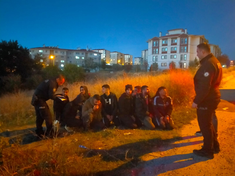 Edirne Kent merkezindeki bir çalılık alanda gizlene Suriye ve Filistinli 10 düzensiz göçmen gözaltına alındı.