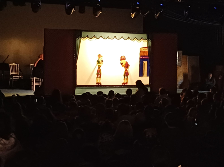 Ramazan ayının vazgeçilmez simgeleri arasında yer alan Karagöz ve Hacivat’ın sahnedeki neşeli diyalogları, minik izleyicilerin yanı sıra ailelerin de beğenisini kazandı.