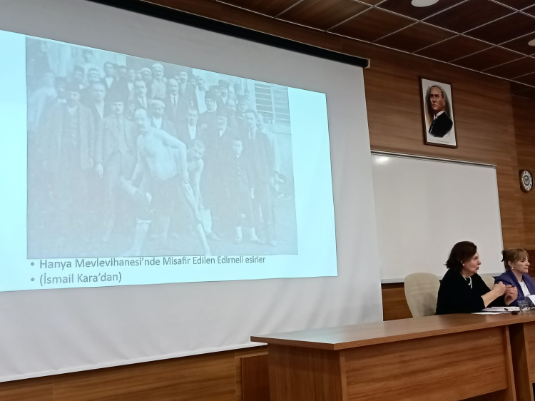 Trakya Üniversitesi Balkan Araştırmaları Enstitüsü tarafından Operatör Dr. Filiz Bengi’nin katılımıyla “Milli Mücadelenin Sessiz Tanıkları: Edirneli Esirlerin Hanya Mevlevihanesi’nde Misafirliği” konulu panel düzenlendi.