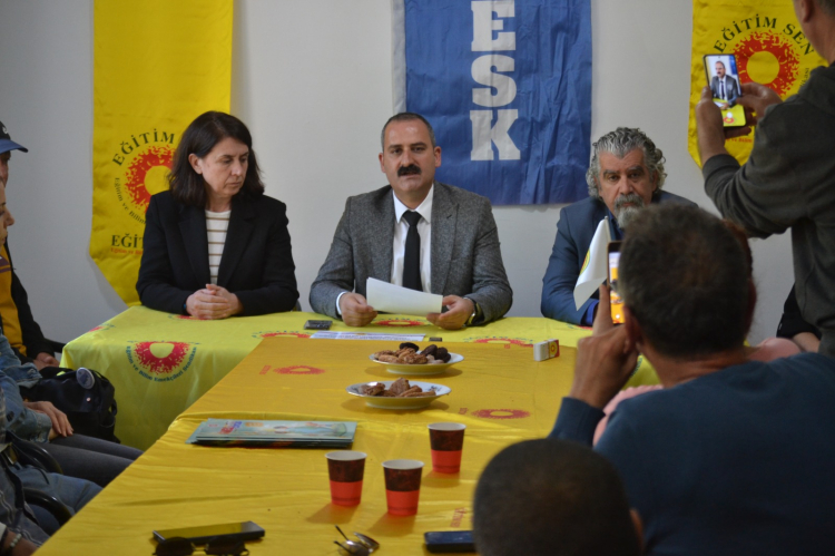 Eğitim-Sen Edirne Şube Başkanı Ahmet Acet ve yönetim kurulu üyeleri ile sendika üyeleriyle bir araya gelen Güneş ve Tolu, basın açıklaması gerçekleştirdiler. Basın açıklamasını okuyan Güneş, 8. toplu sözleşme sürecinde emekçileri mücadelede birleşmeye davet ederken; Eğitim-Sen’in vergide adalet, eşit işe eşit ücret, yan ödemelerin taban aylığına yansıtılması ve insanca yaşayacak emeklilik ücreti istediğini söyledi.