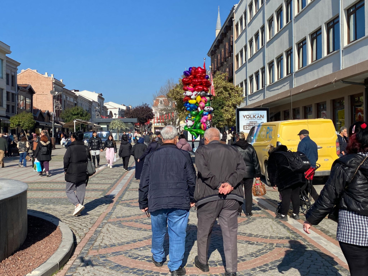 Edirne’de öğleden sonra yüzünü gösteren güneş, vatandaşları açık alanlara yönlendirdi. Trafiğe kapalı Saraçlar Caddesi’ne akın eden vatandaşlar, banklarda oturarak güneşlendi, alışveriş yaptı.