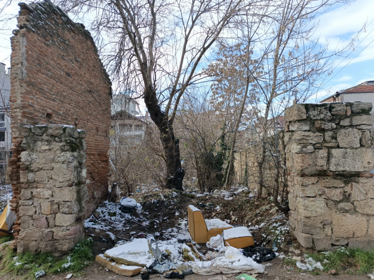 Duvarlarının etrafında çok sayıda çöp konteyneri olsa da insan eliyle atılan çöpler ve ev eşyaları nedeniyle bahçesi adeta çöplüğe dönüşmüş durumda. Kentteki gözden uzakta kalan ara bir sokakta geleceğe aktarılamayan bir miras olarak kalan alanda yıllardır herhangi bir çalışma yapılmaması da dikkat çekiyor.