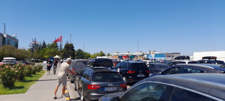 Kilometreler süren kuyrukta sıcak havaya maruz kalan gurbetçiler, her yıl geri dönüş yolculuğunda yaşadıkları bekleme probleminin çözülmesini talep ettiler.