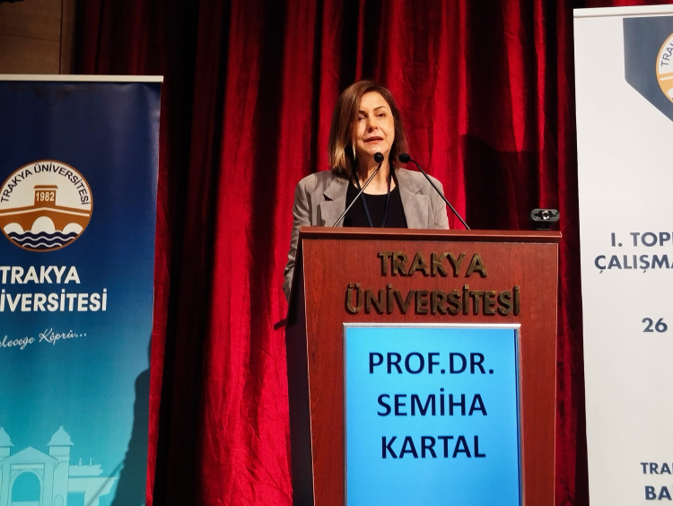Rektör Hatipler’den sonra kürsüye gelen ve çalıştay hakkında bilgiler veren Trakya Üniversitesi Toplumsal Katkı Çalışma Grubu Başkanı, Mimarlık Fakültesi Dekanı Prof. Dr. Semiha Kartal; “Üniversitemiz sadece akademik başarılarıyla değil, aynı zamanda topluma katkı sağlamak adına yürüttüğü projelerle de adından söz ettirmektedir. Bugün burada bu katkıları daha görünebilir hale getirmek, daha etkin ve sürdürülebilir çözümler geliştirmek adına toplanmış bulunmaktayız. Toplumsal katkı toplum yararına yapılabilecek her türlü faaliyet ve hizmeti kapsayan, toplumun gereksinimlerini ve beklentilerini karşılayabilecek etkili ve sürdürülebilir çözümlerin hayata geçirilmesidir. Sadece bir üniversitenin değil, tüm toplumun ortak sorumluluğudur. Trakya Üniversitesi olarak bu sorumluluğu yerine getirmek için sadece kendi potansiyelimizi kullanmakla kalmıyor, paydaşlarımıza açık olma ve çevreyle etkileşim halinde olabilme bilinciyle yerel, ulusal ve uluslararası düzeyde işbirlikleri kurarak bu katkıyı en üst düzeye çıkarmayı hedefliyoruz” ifadelerini kullandı.