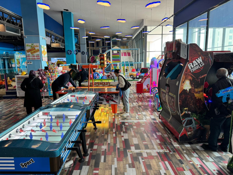 Çocuklarının gönüllerince eğlenmesini sağlayan aileler ardından kafe ve restoranlarda yoğunluk oluşturdu. Son zamanların en kalabalık günlerinden birinin yaşandığı alışveriş merkezlerindeki yoğunluk fotoğraflara yansıdı.