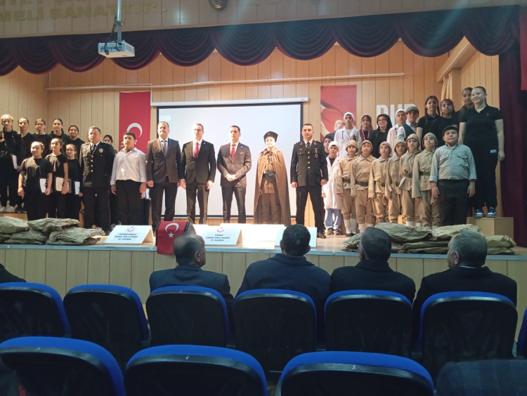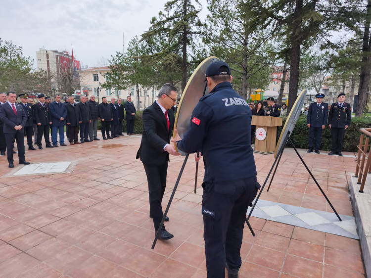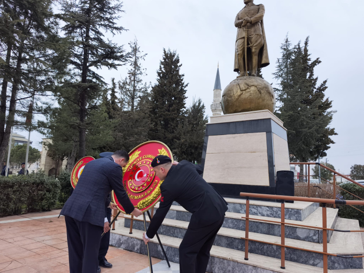 Kaymakamlık ve Belediye Başkanlığı tarafından Atatürk Anıtı’na çelenk sunulmasının ardından saygı duruşunda bulunuldu ve İstiklal Marşı okundu.