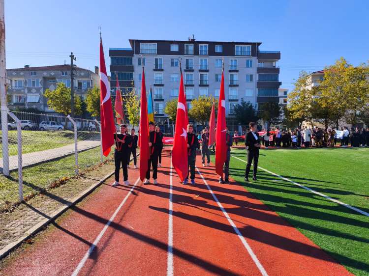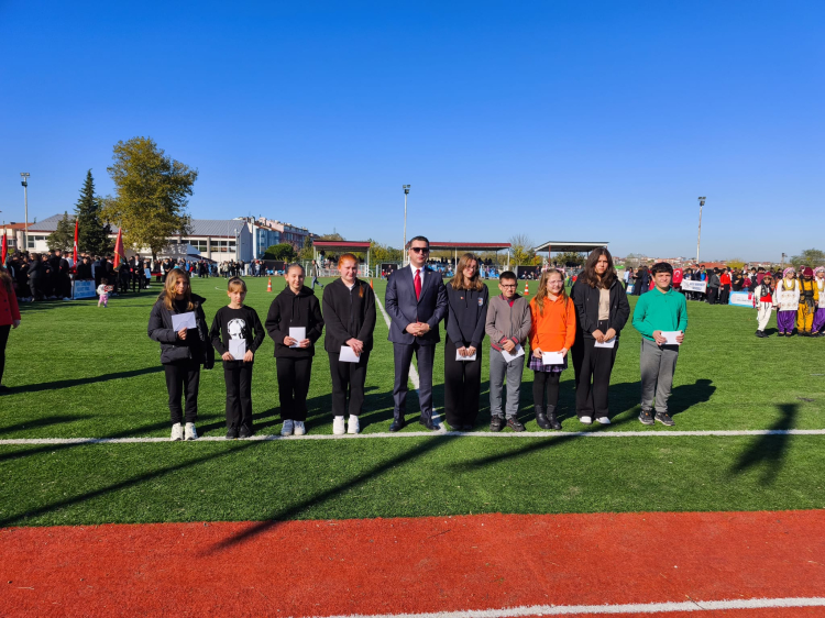 Kutlama programı, saat 10.30’da ilçe stadyumunda devam etti. Programda protokolün bayram kutlamasının ardından saygı duruşunda bulunuldu ve İstiklal marşı okundu.