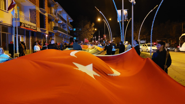 Edirne’nin Havsa ilçesi, düşman işgalinden kurtuluşunun 102’nci yıl dönümünü coşkulu yürüyüşle kutladı. 102. Yıl Kurtuluş Yürüyüşü kapsamında Atatürk Ortaokulu önünde toplanan kalabalık, ellerinde Türk bayrakları ve meşalelerle Fatih Caddesi boyunca yürüdü. Soğuk havaya rağmen büyük bir katılımın olduğu etkinlikte vatandaşlar, Havsa Belediyesi’nin önüne kadar yürüyüşe devam etti. Havai fişek gösterileriyle renklenen etkinlikte coşku doruğa ulaştı.