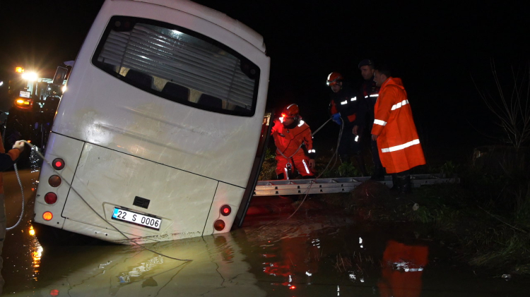 Edirne’nin Havsa ilçesinde etkili olan sağanak yağış nedeniyle direksiyon hakimiyetini kaybeden sürücü Abalar köyü yakınlarında yol kenarında bulunan sulama kanalına girdi.