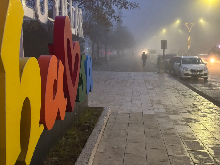 Yoğun sis nedeniyle sürücüler trafikte yavaş ilerlemek zorunda kalırken, yetkililer dikkatli olunması yönünde uyarılarda bulundu.