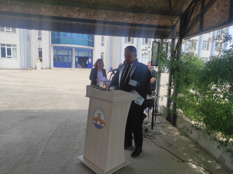 Tören, saygı duruşu ve İstiklal Marşı’nın okunmasıyla başladı. Meslek Yüksekokulu Müdürü Dr. Öğr. Üyesi Hüseyin Erdaş yaptığı konuşmada öğrencileri başarılarından dolayı tebrik etti.
