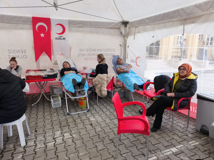 Gün boyunca okul bahçesinde kurulan alanda bağış işlemleri gerçekleştirilirken, yetkililer vatandaşları kan bağışı konusunda duyarlı olmaya davet etti.