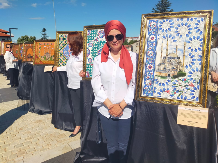 Selimiye Cami'nde yer alan süslemeler, "Selimiye'den Yansımalar" başlığıyla hazırlanan sergide, Edirnekari, çinicilik, resim, hat ve tezhip sanatlarıyla yeniden hayat buldu.