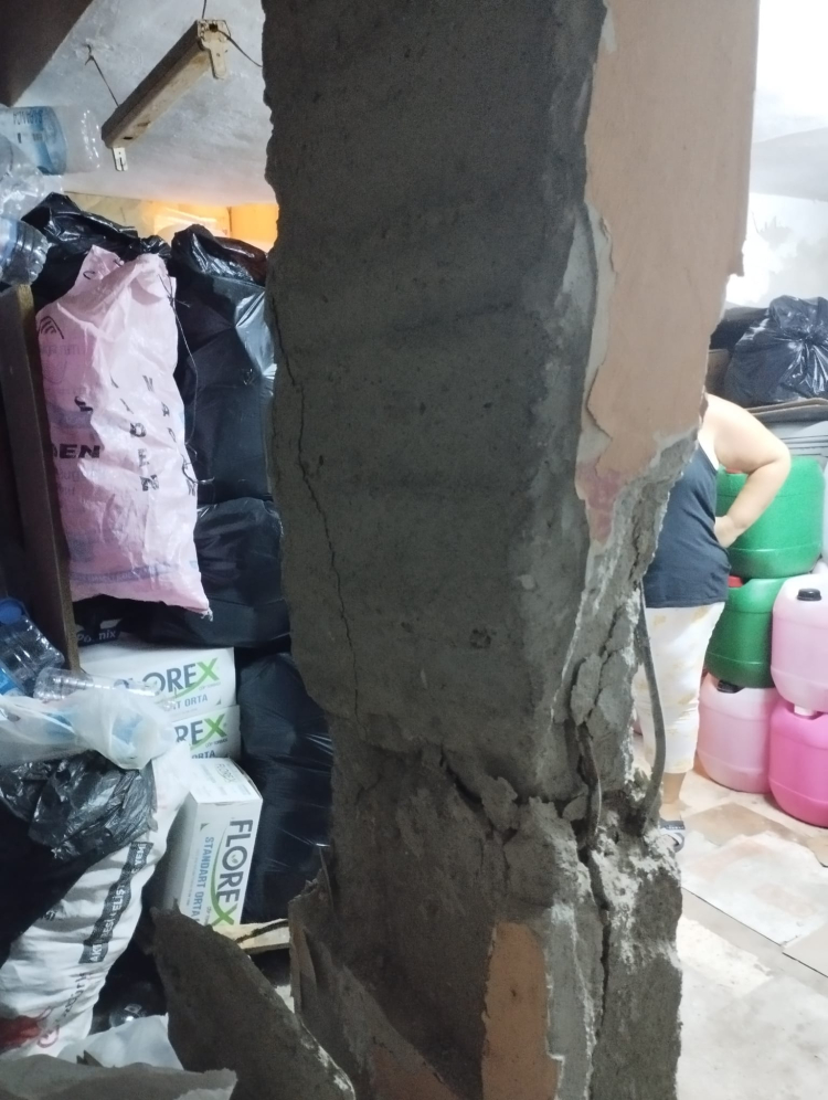 Edirne'de tahliye edilen riskli binanın kolon fotoğraflarına Batı Ekspres ulaştı. Kolonların bir kısmının patladığı, bir kısmının kırıldığı görüntüler, görenleri korkuttu. Betonların parçalandığı demirlerin de eğilmeye başladığı binanın kolonlarının her saniye döküldüğü görüldü.