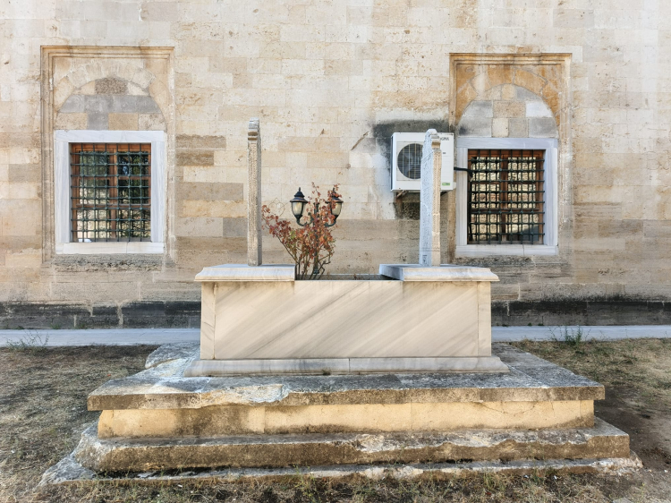 Sitti Şah Sultan’ın mezarındaki mermerden yapılan baş ve ayak taşları, bir dönem tahrip olması nedeniyle Edirne Müze Müdürlüğü binasına taşınırken; onarılmasının ardından yeniden mezarına naklediliyor. Mezar taşının onarıldığı bölümlerin yanı sıra üzerindeki çarkıfelek, kandil ve şamdan motifleriyle de dikkat çekiyor.