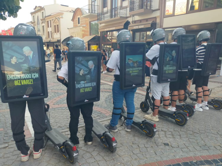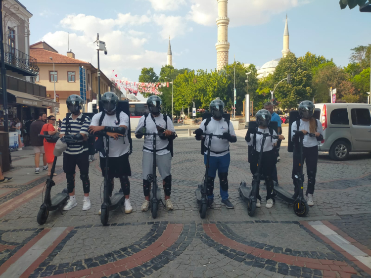 Edirnelilerin yakından takip ettiği bu ziyaretin yanı sıra bugün yeni bir çalışmaya daha imza atıldı. ScoodAd ekibi tarafından sırt çantalarına LED paneller takılarak İYİ Parti'nin afişleri gösterildi. Scooterlı gençler, sırtlarına taktıkları çantalarla Saraçlar Caddesi başta olmak üzere şehrin çeşitli yerlerinde tur atarak çalışma yürüttü.
