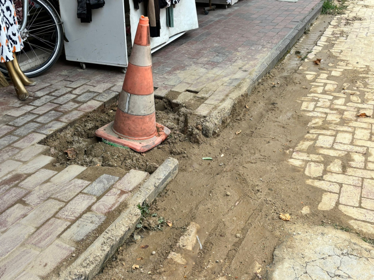 Edirne’nin işlek noktalarından biri olan Bedesten Çarşısı önündeki Lüleciler Sokak’ta, kaldırımda meydana gelen su patlağı sonrası yapılan onarımın ardından yalnızca bir duba yerleştirilerek geçici önlem alındı.