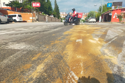 Edirne'nin Şükrüpaşa Mahallesi Bahriye Üçok Caddesi'nde bir kamyondan sızan yağ, asfaltı kayganlaştırdı. O esnada yolda seyreden motokurye B. Ç.'nin kullandığı 34 HFR 9** plakalı motosiklet, sürücüsünün direksiyon hakimiyetini kaybetmesi sonucu yere düştü.