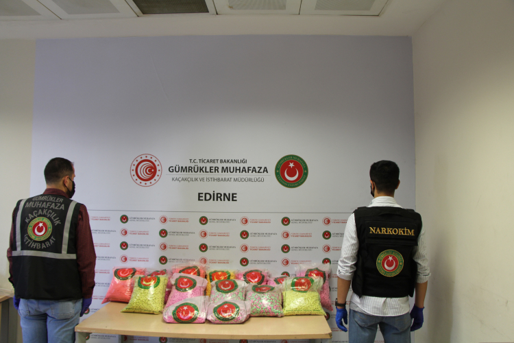 Aramada şeffaf poşetler içinde 27 paket halinde 77 kilo 36 gram sentetik uyuşturucu hap ele geçirildi.